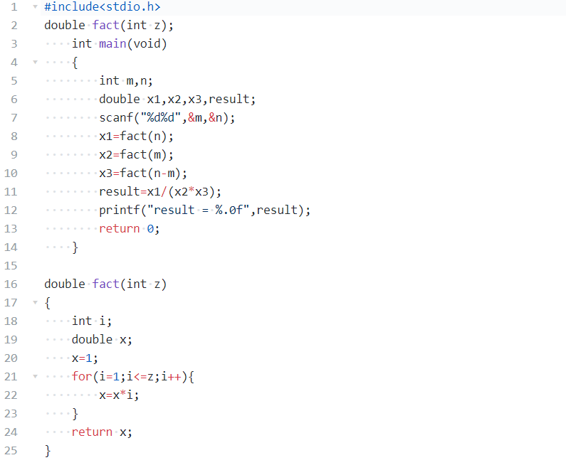 1.1本题要求编写程序算出从n个不同元素中取出m个元素(m≤n)的组合数。