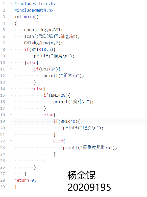 数据表达:使用双浮点型变量 double kg,m,BMI;