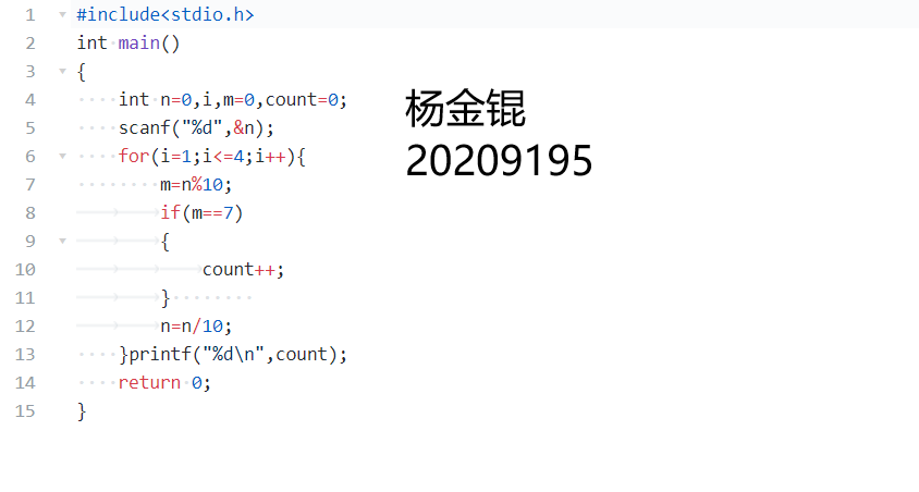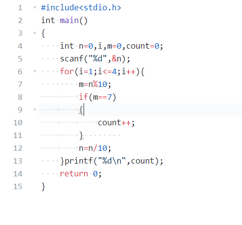 题目内容描述:从键盘读入一个4位数的整数,求该数中有多少位是7