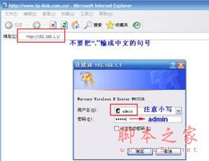 ①打开浏览器,输入192.168.1.1打开路由器的管理界面,在弹出的登录框中输入路由器的管理帐号"admin/admin";
