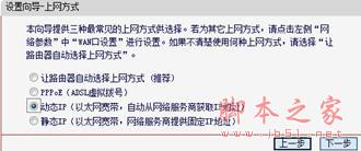 ③选择"上网方式"(常见上网方式有PPPOE、动态IP地址、静态IP地址三种,请根据下面的描述选择对应的上网方式):