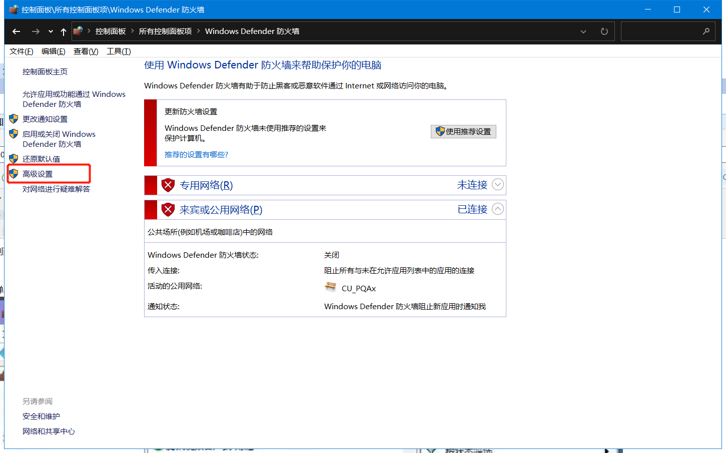 控制面板\所有控制面板项\Windows Defender 防火墙