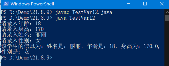 //键盘录入学生的信息,年龄,身高,姓名,性别