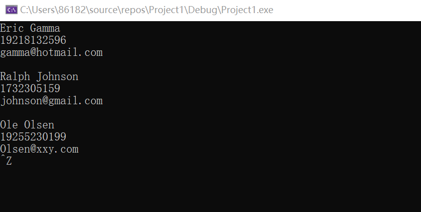 out << p.name << '\t' << p.telephone << '\t' << p.email << endl;