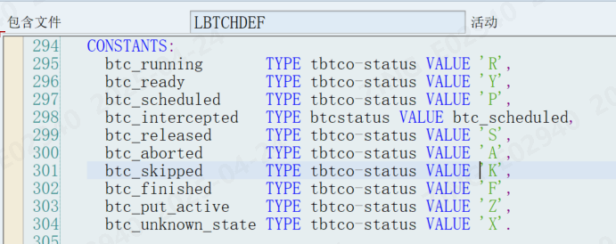 7.后台任务表TBTCO 状态字段STATUS P=已计划 S=已释放 Z=挂起