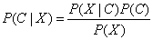 其中,P(C|X)是根据样本X对类别C的预测值。P(C)是类先验概率,它表示为某类样本在总样本中出现的可能性,对于某个样本,P(X)与样本分类无关。因此,求贝叶斯公式的关键在于求类条件概率P(X|C)。