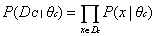 似然即类条件概率P(X|C),假设P(X|C)被参数向量θc唯一确定,则参数θc对数据样本某类类别为C的训练样本Dc的似然可以表示为: