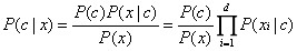 朴素贝叶斯分类器的“朴素”之处在于:假设这些属性都是独立的。即每个属性都独立的对结果造成影响。基于这种思想,贝叶斯公式可以改写为: