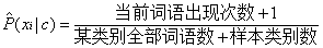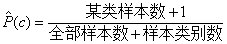 此时有一个问题:假设测试样本中某个单词在训练样本中没有出现过,那么似然估计结果为0,会导致估计错误。因此需要对数据做拉普拉斯平滑处理。处理过程如下: