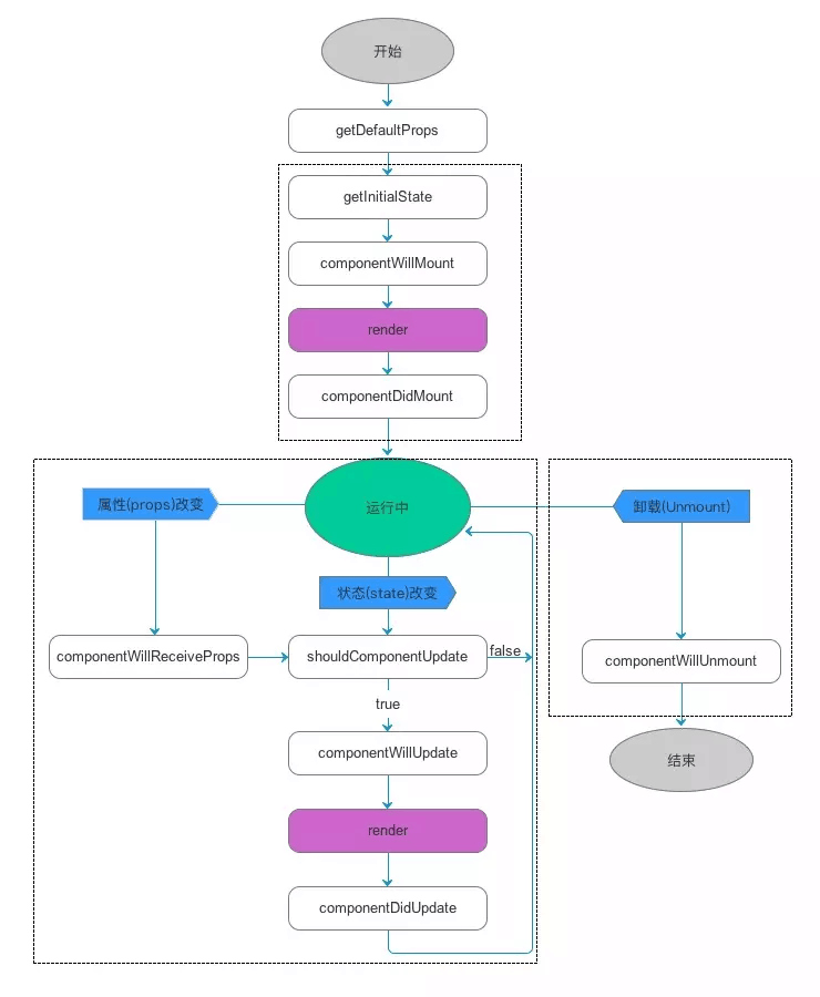 旧的属性还是可以通过 this.props 来获取,通过调用 this.setState() 来更新你的组件状态,这里调用更新状态是安全的,并不会触发额外的 render() 调用。
