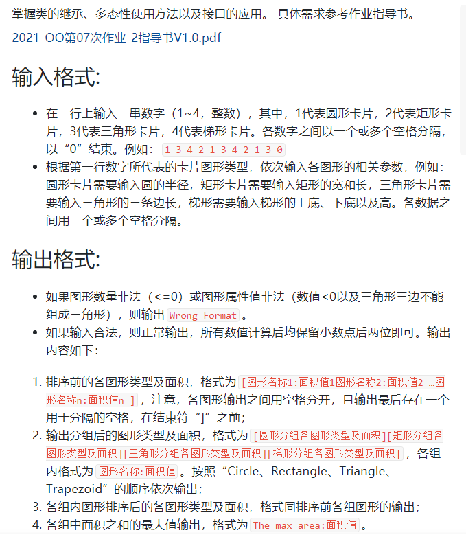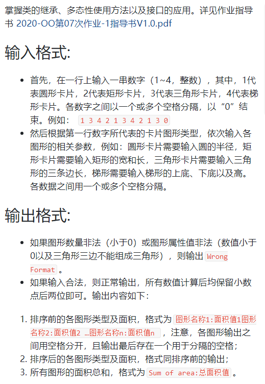 题目7-1为一款适合于小学生的卡片(Card)排序游戏,其规则为随机发放一些卡片给学生,卡片分为 四种形状:圆形(Circle)、矩形(Rectangle)、三角形(Triangle)及梯形(Trapezoid),并给出各种 卡片的相应参数,要求学生能够迅速求出各卡片的面积大小然后将卡片按照其面积值从大到小进行排 序,同时求出所有卡片的面积之和。