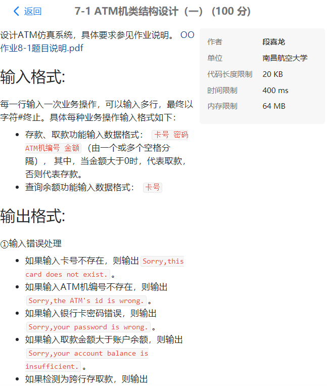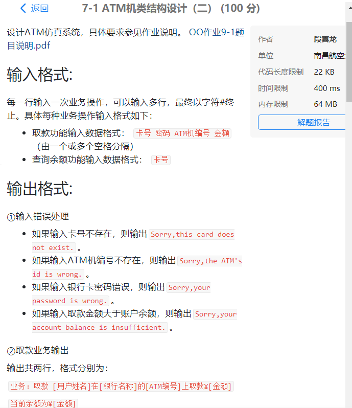 2、题目集8和题目集9ATM机仿真题目的设计思路分析总结