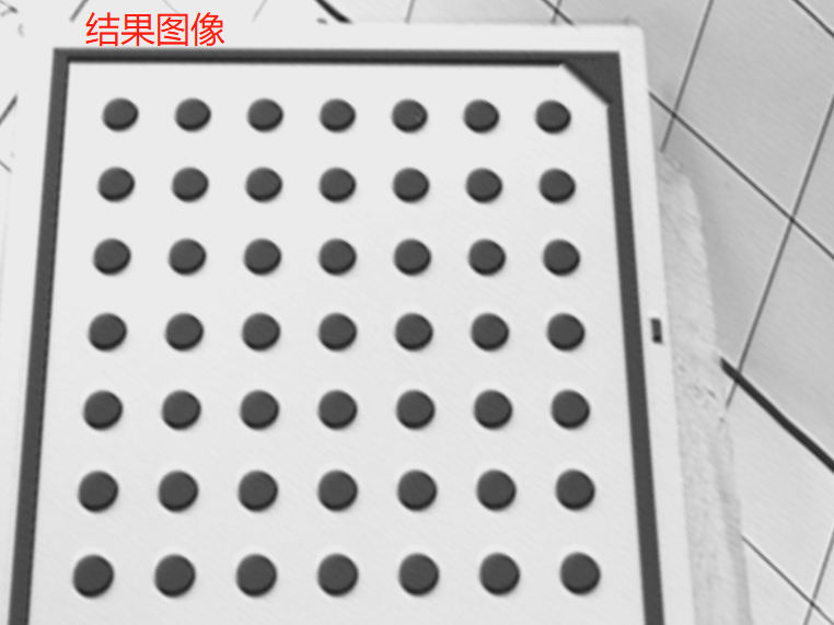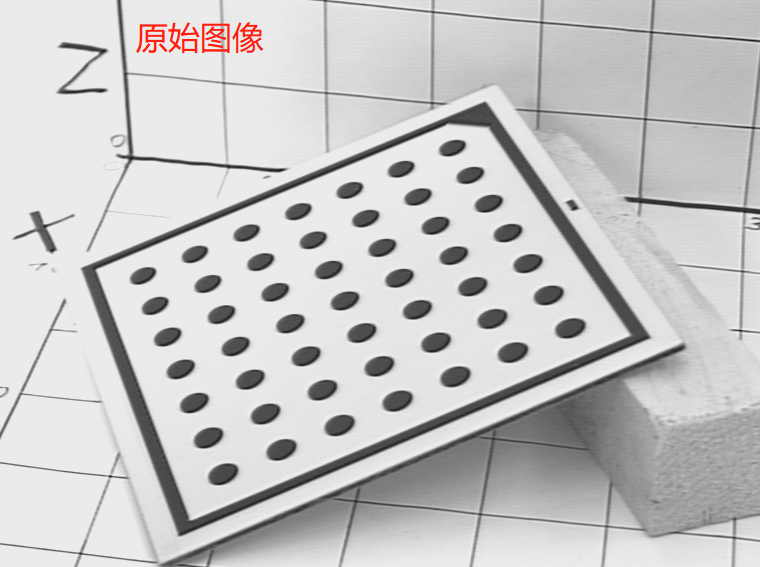 dev_close_window () dev_open_window (0, 0, 512, 512, 'black', WindowHandle) read_image (Image, 'cali/grid_space.cal.k.003') threshold (Image, Region, 0, 100) connection (Region, ConnectedRegions) *筛选圆点 select_shape (ConnectedRegions, SelectedRegions, 'circularity', 'and', 0.5139, 1) select_shape (SelectedRegions, SelectedRegions1, 'area', 'and', 150, 99999) *把圆点搞正 union1 (SelectedRegions1, RegionUnion) smallest_rectangle2 (RegionUnion, Row, Column, Phi, Length1, Length2) gen_rectangle2 (Rectangle, Row, Column, Phi, Length1, Length2) *通过点角度,对应关系得到变换矩阵 vector_angle_to_rigid (Row, Column, Phi, Row, Column, 0, HomMat2D) *区域的几何变换 affine_trans_region (RegionUnion, RegionAffineTrans, HomMat2D, 'nearest_neighbor') connection (RegionAffineTrans, ConnectedRegions1) area_center (ConnectedRegions1, Area, Row1, Column1) sort_region (ConnectedRegions1, SortedRegions, 'character', 'true', 'row') *生成一个等差数组 tuple_gen_sequence (1, 49, 1, Sequence) disp_message (WindowHandle, Sequence, 'image', Row1, Column1, 'black', 'true') *变换矩阵关系取反 hom_mat2d_invert (HomMat2D, HomMat2DInvert) *像素坐标的几何变换 affine_trans_pixel (HomMat2DInvert, Row1, Column1, RowTrans, ColTrans) disp_message (WindowHandle, RowTrans, 'image', RowTrans, ColTrans, 'black', 'true') row:=[] col:=[] startR:=100 startC:=100 step:=70 for r := 1 to 7 by 1 for c := 1 to 7 by 1 row:=[row,startR+(r-1)*step] col:=[col,startC+(c-1)*step] endfor endfor vector_to_hom_mat2d (RowTrans, ColTrans, row, col, HomMat2D1) *图像的几何变换 affine_trans_image (Image, ImageAffineTrans, HomMat2D1, 'constant', 'false')