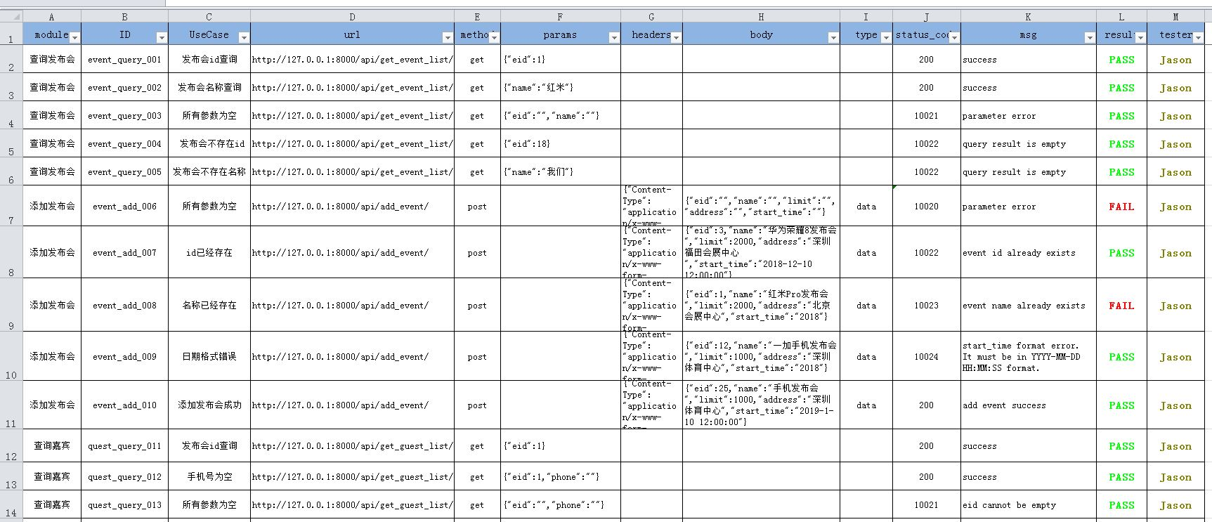 - Excel测试用例结果