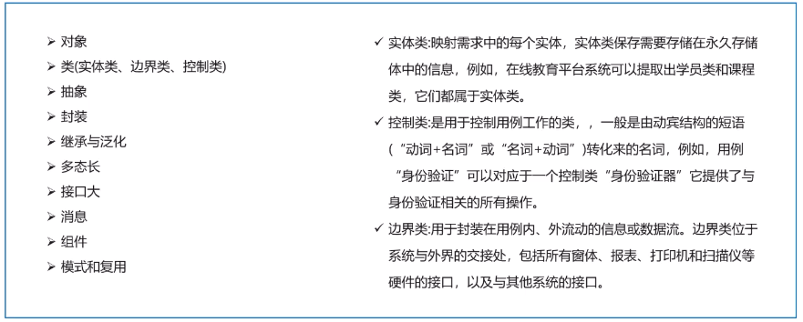 - 边界类:与外部交互相关(如窗口、报表、接口)。