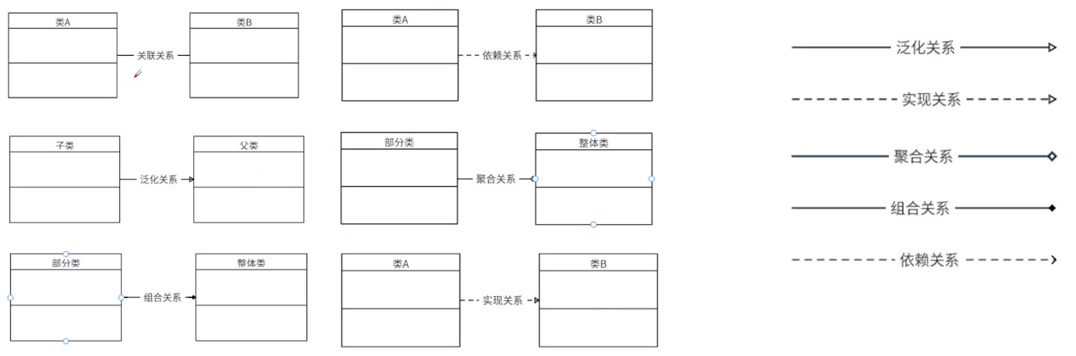 - 关联:简单实线连接,表示类间有逻辑联系(常用于简化其他复杂关系)。