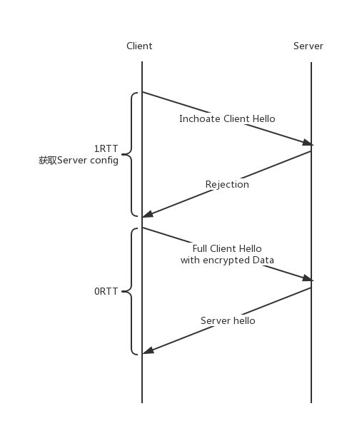 后续的连接,如果客户端本地的serverConfig没过期(包含了Apg和其他前次协商信息),直接可以计算出初始秘钥K并加密传输数据,实现0RTT握手。