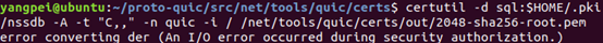 certutil -d sql:$HOME/.pki/nssdb -A -t "C,," -n quic -i / /net/tools/quic/certs/out/2048-sha256-root.pem