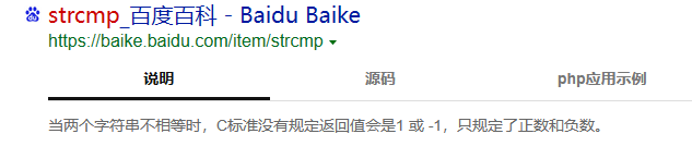 可以看到,返回值为int,是要用这个返回的int来表示str1和str2的大小关系,这个函数有点特别,通常来讲有以下三种情况: