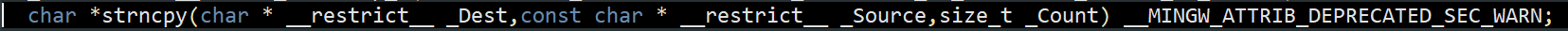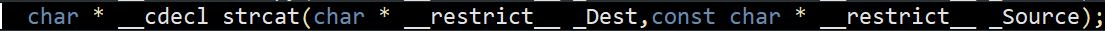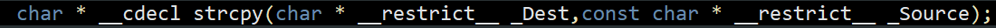 需要注意的是如果目标数组 dest 不够大,而源字符串的长度又太长,可能会造成缓冲溢出的情况。