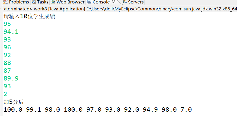 3.定义一个double数组,存放10个学生的成绩,给所有同学加5分,不能超过100分。