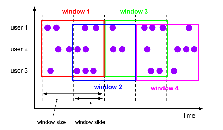 滑动窗口的输出频率是按照滑动步长来进行输出的