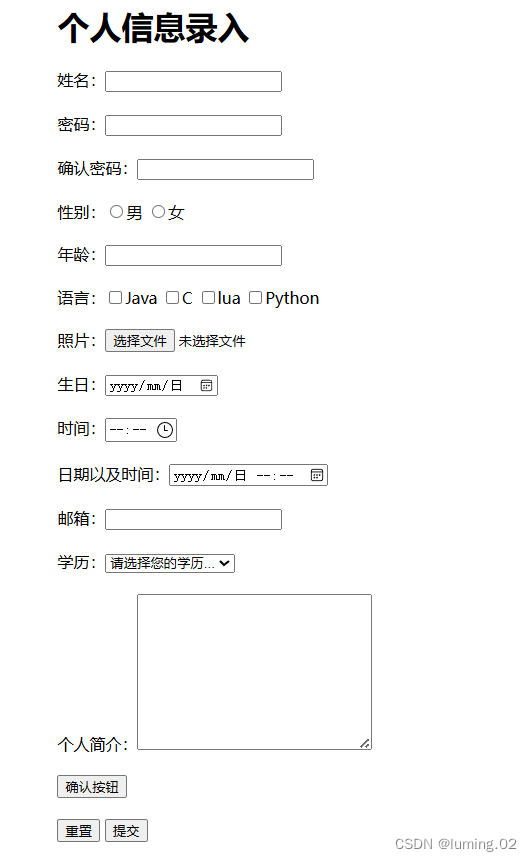 日期以及时间:<input type="datetime-local" name="datetime-local"><br><br>