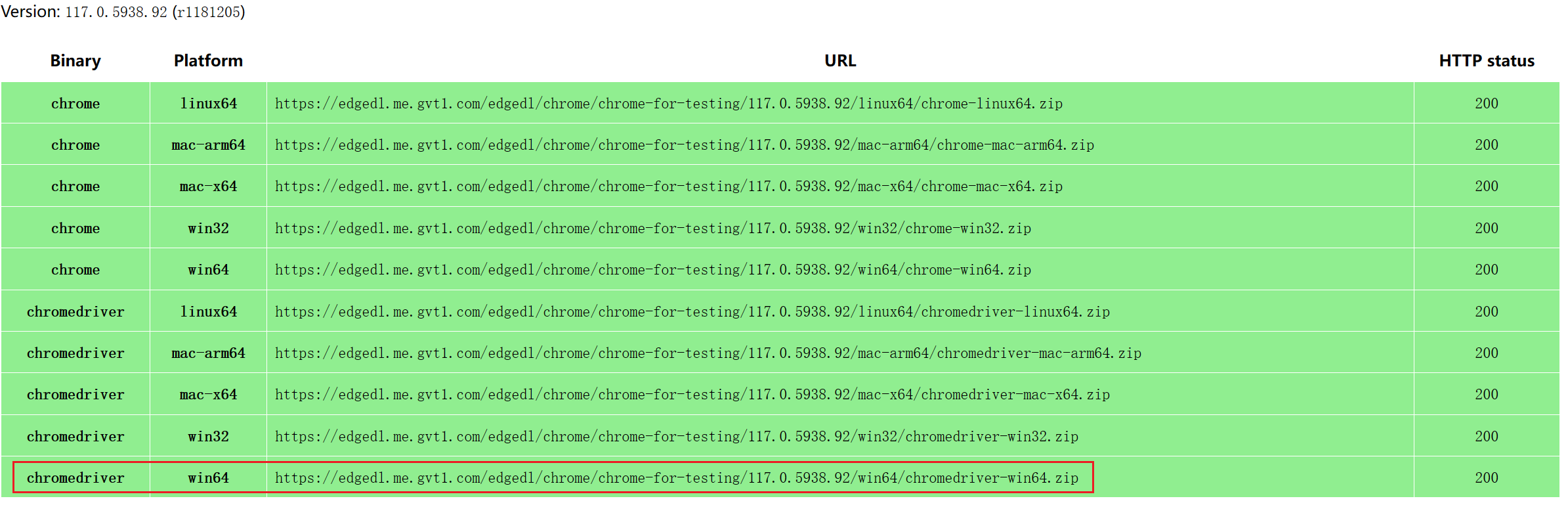 上面的地址仅提供到 114 版本,114 以上的需要在这个网址获取:https://googlechromelabs.github.io/chrome-for-testing/