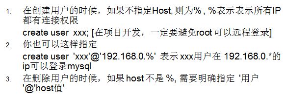 如果我们只能使用root用户,这样安全隐患, 这时,我们需要使用mysql的用户管理技术.