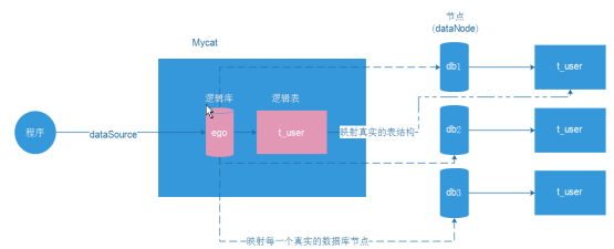 逻辑库:虚拟的数据库,用来对外配置dataSource;