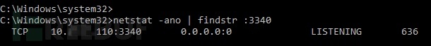 你可以使用其PID找出正在侦听此端口的进程(在我们的示例中PID为636):