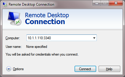 让我们使用任意的RDP客户端尝试从远程系统连接到此计算机。指定RDP端口3340,在RDP服务器地址后以冒号分隔,例如10.10.1.110:3340