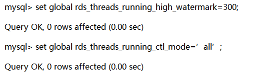 threads_running_high_watermark: 限流水位值,只有threads_running超过此值才会触发,默认值为max_connections,当set global threads_running_high_watermark=0时自动设置为max_connections。