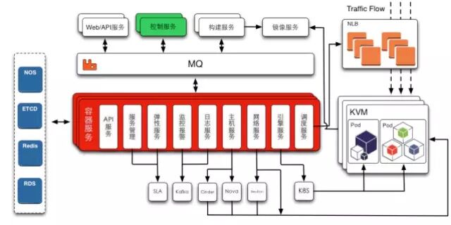 网易蜂巢平台的服务化架构如下,服务间通过RabbitMQ实现通信: