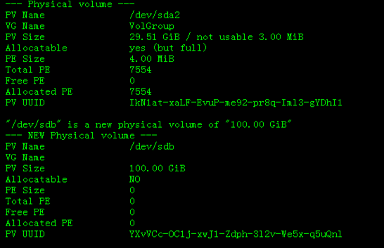 查看 Pvdisplay: