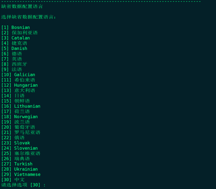 选择数据配置语言,默认30中文就好;
