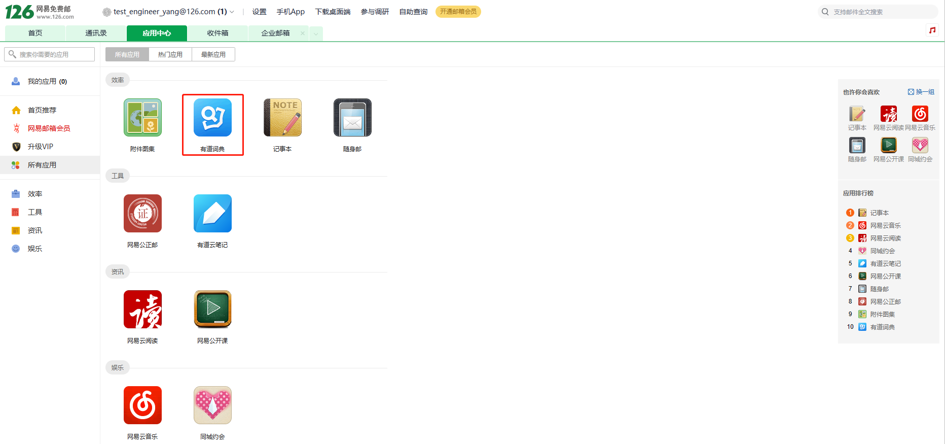 ---》需求二:账号登录成功后,实现从邮箱首页的应用中心进入有道词典,并校验有道词典是否能正常使用