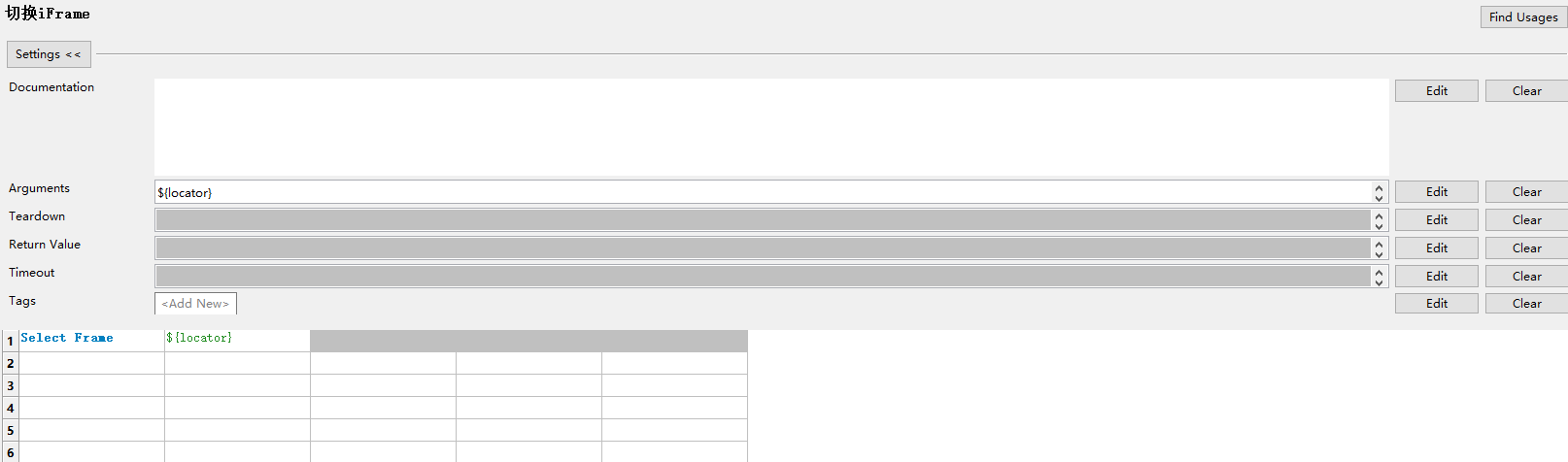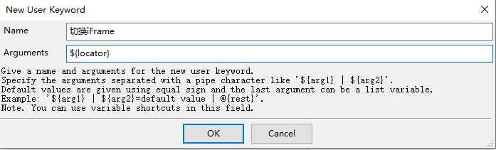 --》在“浏览器”资源文件中,新建一个名称为“切换iFrame”的关键字,在“切换iFrame”关键字中,通过Select Frame切换到指定的iFrame中