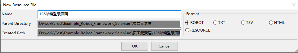 --》需求一种涉及邮箱账号登录页面,因此在“页面元素层”目录下新建一个名称为“126邮箱登录页面”的资源文件,并在“页面元素层”资源文件中导入Selenium2Library库