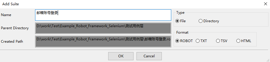 --》在“测试用例层”目录下单击鼠标右键,在弹出的菜单中选择New Suite ,新建测试套件,测试套件名称为“邮箱账号登录”