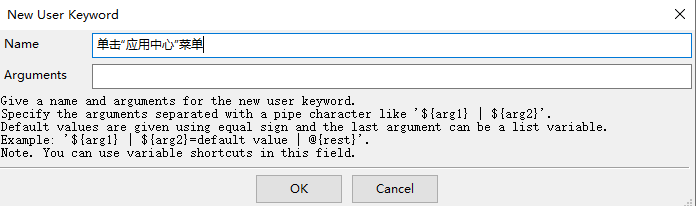 --》在“公共组件层”目录下,选择“浏览器”资源文件,单击鼠标右键,在弹出的菜单中选择New User Keyword,新建关键字,取名为“邮箱账号登录”,在关键字中接收邮箱账号和密码两个参数