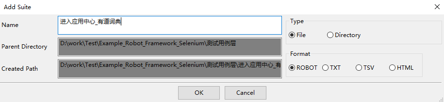 --》在“页面元素层”目录下新建“有道词典页面”资源文件,并导入Selenium2Library库