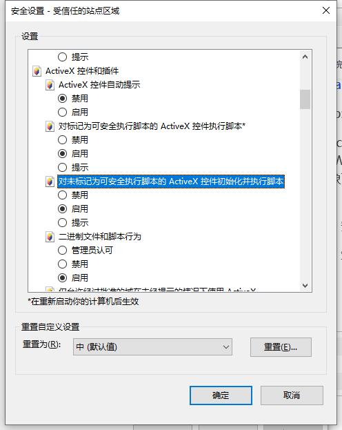 解决方法,internet选项-》安全-》受信任的站点中添加站点-》自定义级别中-》对未标记为可安全执行脚本这一项选中,应用确定,可以打开