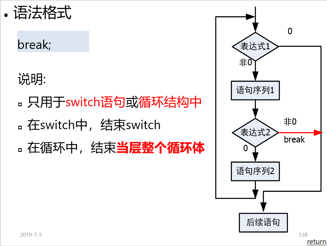 switch(grade) { case 'A': case 'B': case 'C': printf("pass\n"); break; case 'D': printf("fail\n"); break; default: printf("error\n"); } //无break会执行后面的所有case
