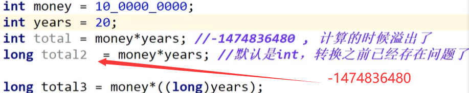 操作比较大的数的时候,注意溢出问题(JDK7新特性,数字之间可以用下划线分割)
