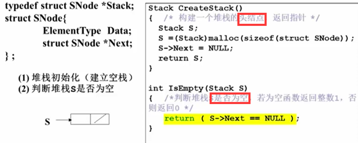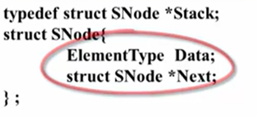 - 堆栈的链式存储实现(用链表实现堆栈),由于删除时会造成找不到前一个结点,故Top不能处于链尾;结构中定义了两个域,Data域Next域生成堆栈的头结点
