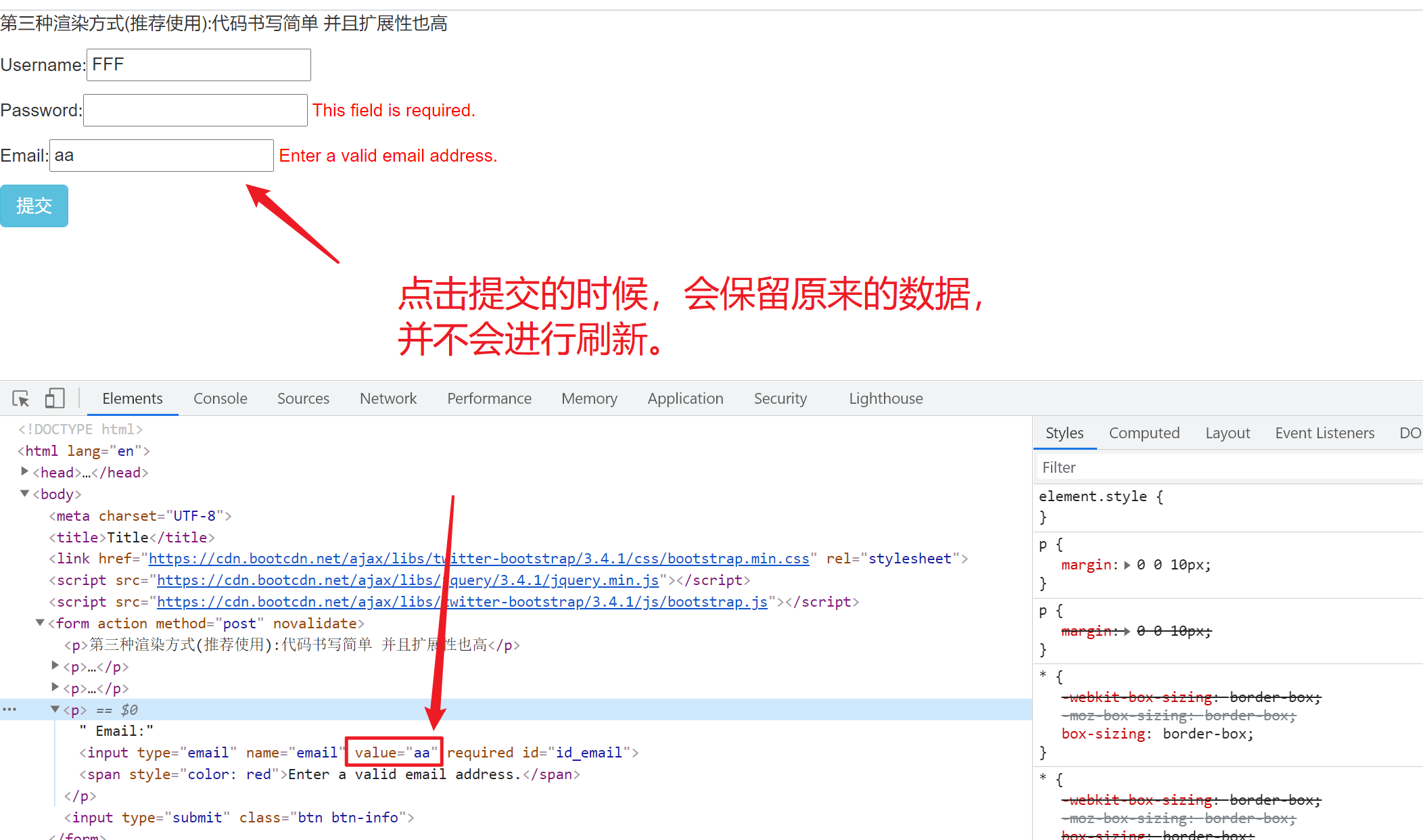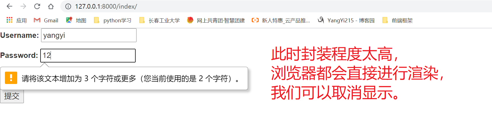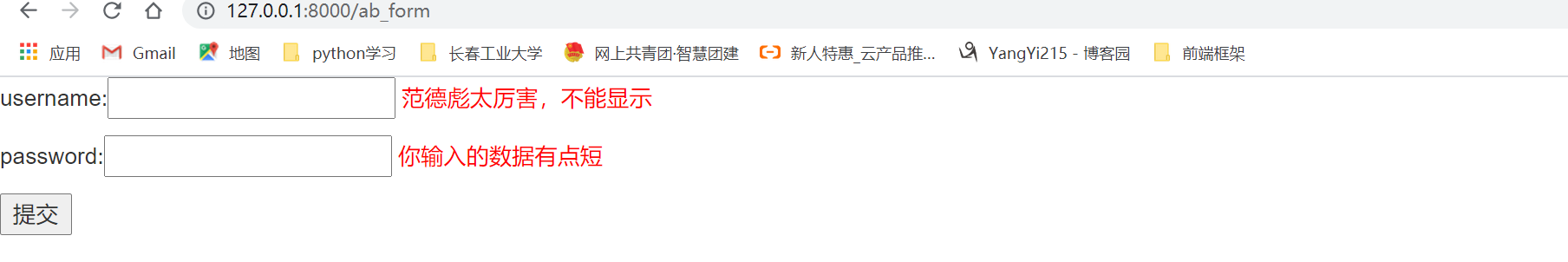 实现了一个校验的过程,但是存在缺陷,我们点击提交之后,以前输入的用户名和密码不会进行保存【有点反人类】。