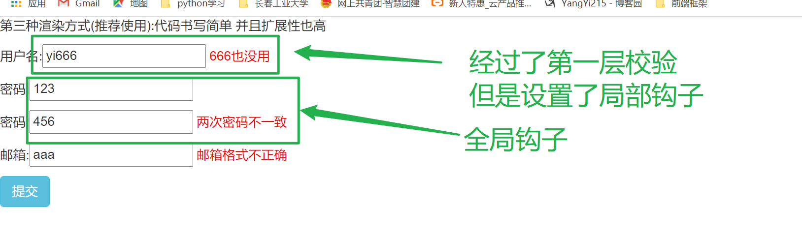 与此同时我们在好多场景下都需要对用户的输入做校验,比如校验用户是否输入,输入的长度和格式等正不正确。如果用户输入的内容有错误就需要在页面上相应的位置显示对应的错误信息.。