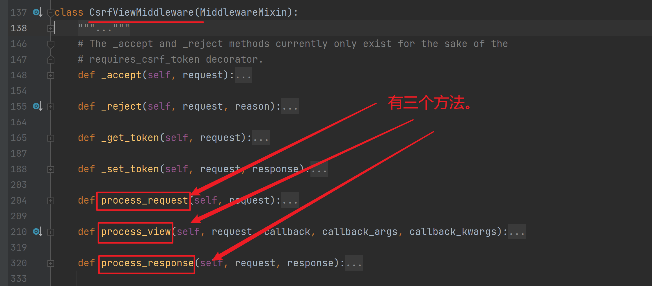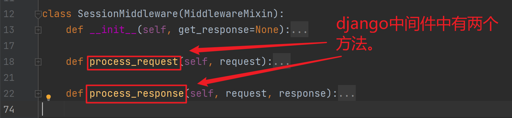 3.在该py文件内需要书写类(这个类必须继承MiddlewareMixin),然后在这个类里面就可以自定义五个方法了