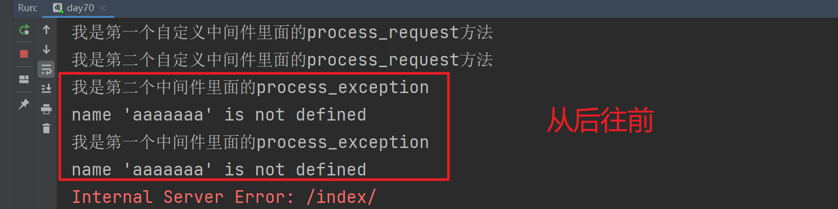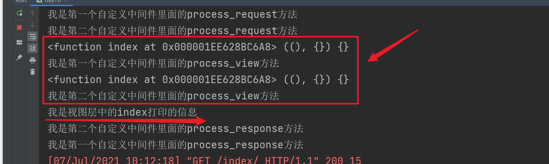我们发现直接从同级别开始返回,返回给前端的数据时process_response中的数据。【flask框架也有一个中间件,但是它的规律不同,只要返回数据了就必须经过所有中间件里面的类似于process_reponse方法】